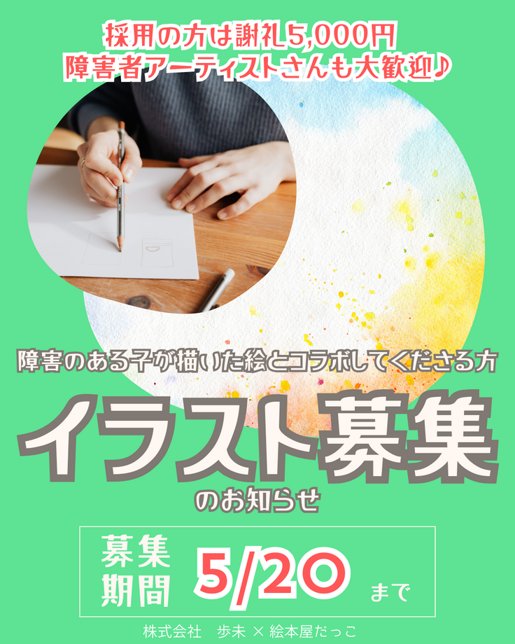 現在、重症心身障害のある子どもたちが描いたアートに共に取り組んでくださる作家さんを、5月20日まで募集しています。完成したコラボ作品は商品化され、子どもたちの収入につながる予定です。