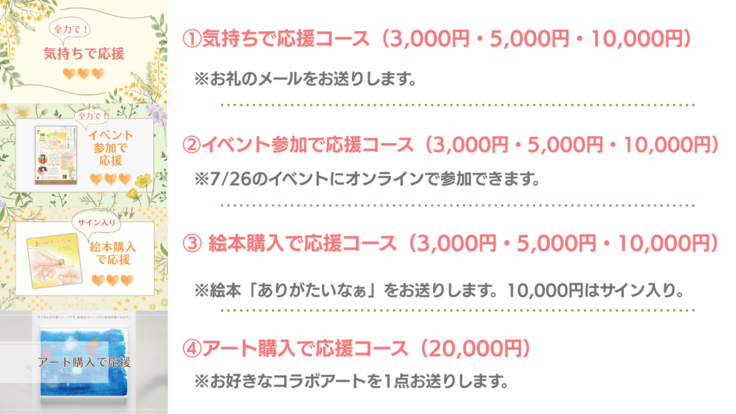 あなたの応援が、未来をあたたかく照らしてくれます。