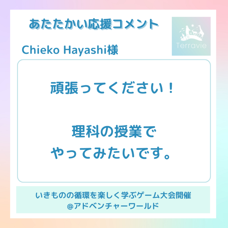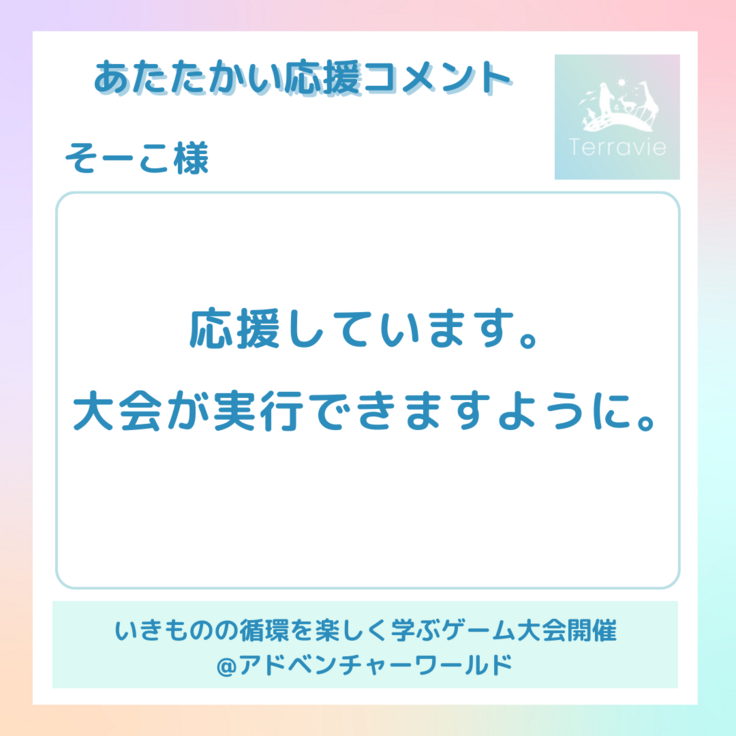 そして今回はご支援と合わせて頂いております応援コメントをご紹介いたします。