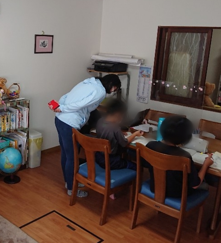 金曜夜の学習スペース開放日は、学生さんにサポートしてもらいながら、苦手なところを中心に進めています。学校に行きづらい子どもさんの学習面でのサポートは、元学校教員の先生が丁寧に指導しています。