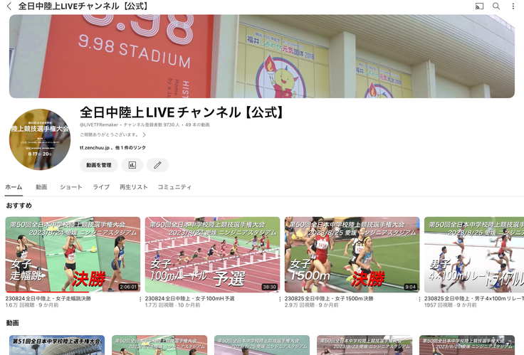 YouTubeで全中陸上LIVEチャンネル【公式】を運営している株式会社Remakerです。