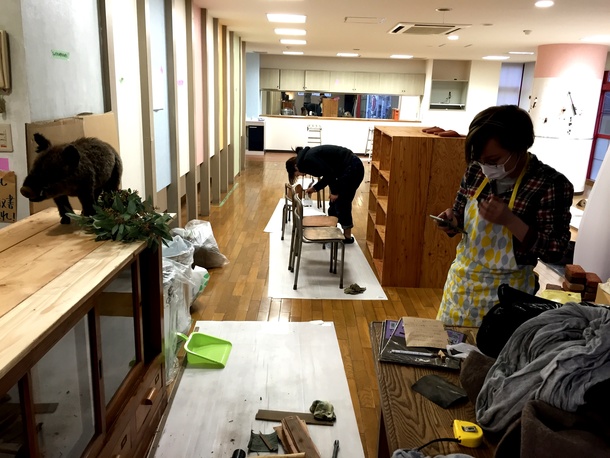 そんなまーこちゃんには工務店さんのご厚意で頂いた、廃校の理科室からもらってきた収納棚の改修をお任せ!