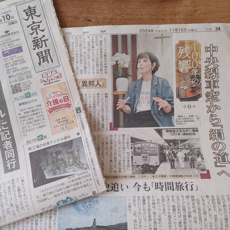 久米小百合さんのインタビューが、11月10日の東京新聞に掲載されました。製作中のドキュメンタリー「神の沈黙」についてもふれています。