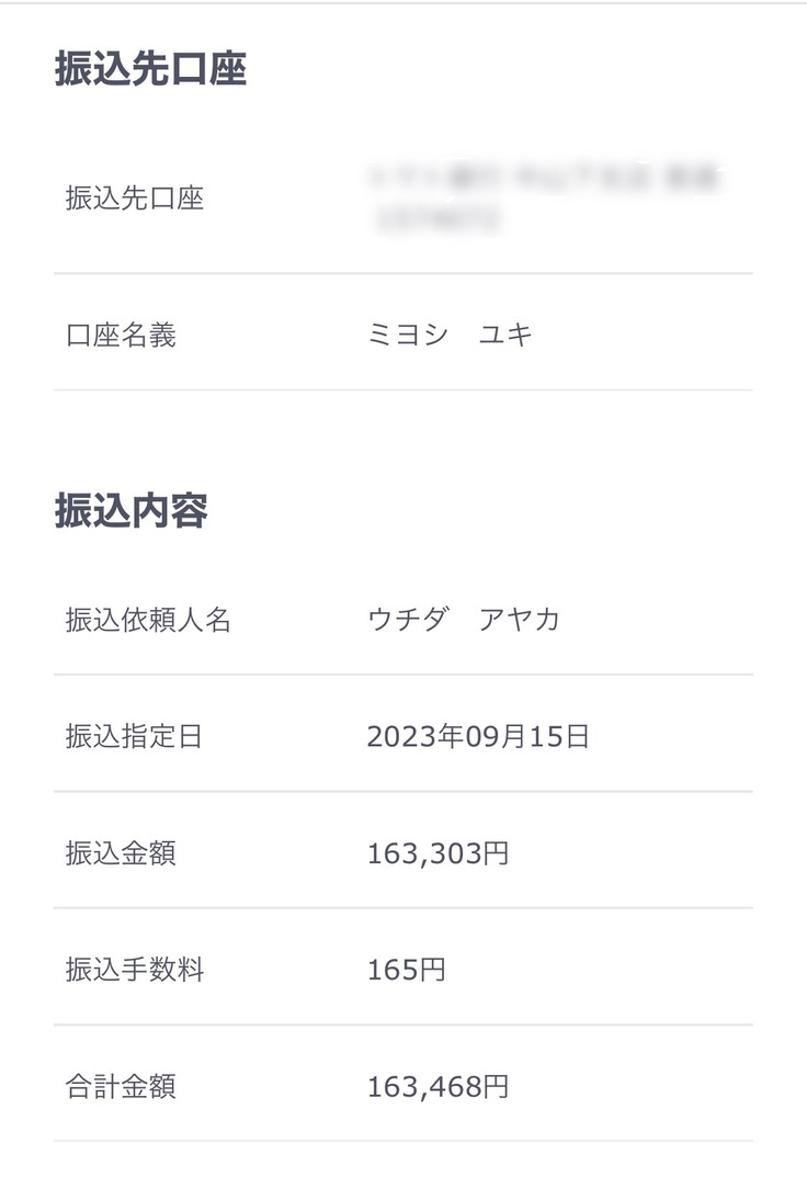 READY FORさまから支援額から手数料を差し引いた金額分、