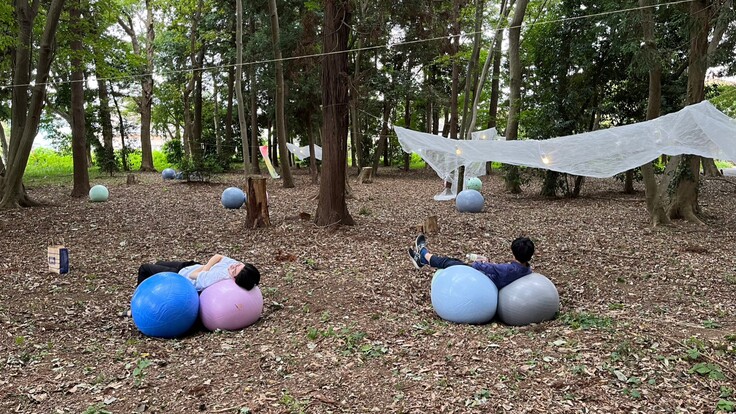 地域説明会では運河に展示していたオノマトペ班の作品もついに、西深井散策の森での試行錯誤が始まりました!運河とは全く異なる雰囲気を持つ西深井散策の森の中で、いかに高さ方向への意識をもたせるか、西深井散策の森全体に広げるかなど多くの難題に当たりながら1つずつ解決していっています。