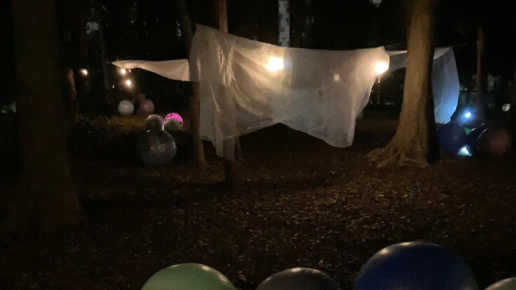西深井散策の森では暗くなってからジャズ研の演奏を予定しており、ジャズ研に合う光を模索中です。今後も試行錯誤を進めながら2週間後の本祭には間に合うよう準備していきたいと考えています。
