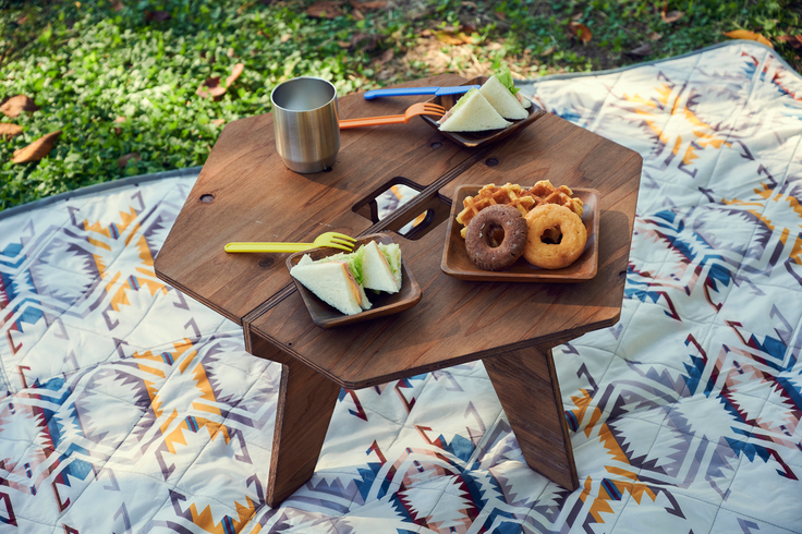 木製の簡単組立テーブルは自然の中でも家の中でも優しい雰囲気を演出してくれます。