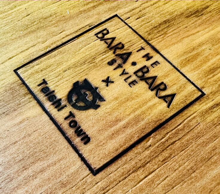 オリジナルコラボレーション焼印がテーブル天板に入っております。