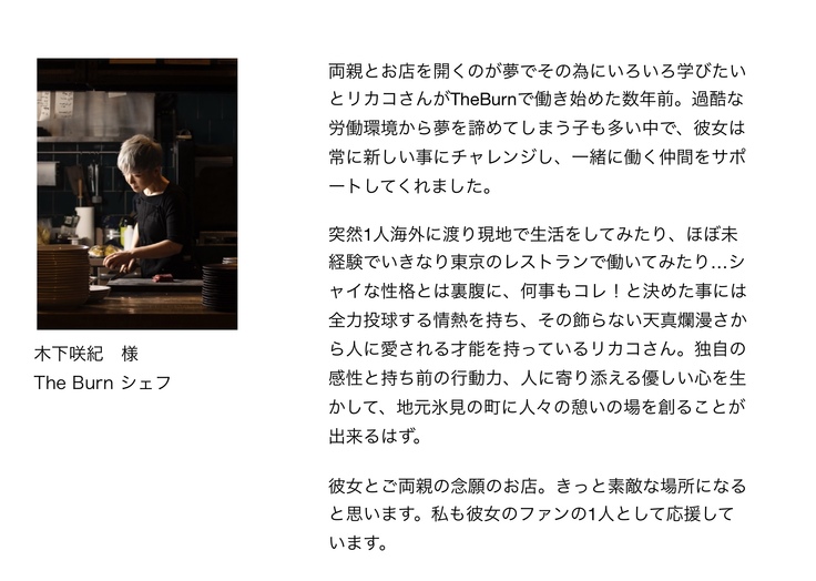 11月にカフェオープンに向けて資金調達する。集まった資金は皿や厨房機器に使用する。