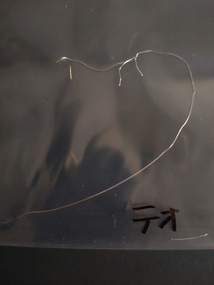 《記念品》2か月間テオの顎を支えたワイヤーを先生が少し取って置いてくれました。