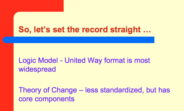 実はユナイテッド・ウェイはロジックモデル(LM)をセオリー・オブ・チェンジと呼び、国際協力の分野等では「ToCとはLMである」との見方もあります。このことから議論の混乱が生まれることもあります。