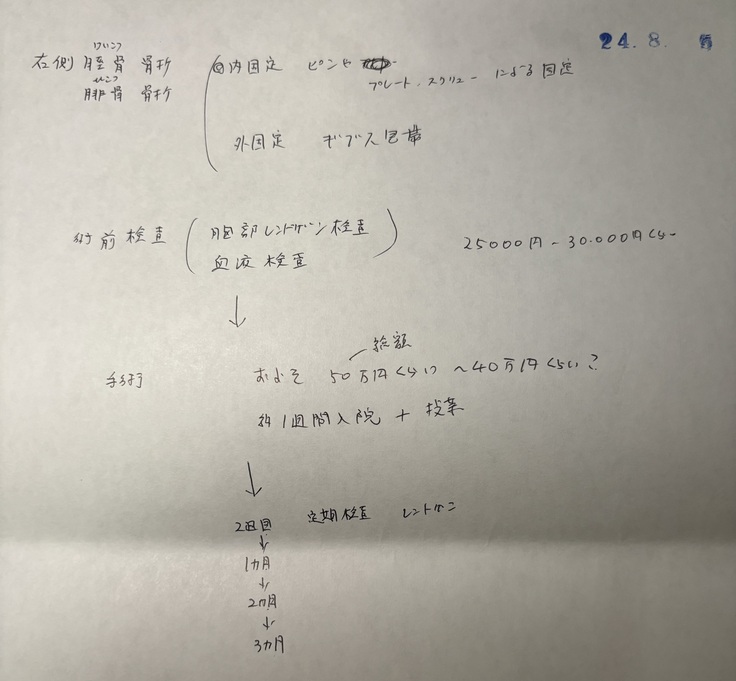 下記は先生にメモしていただいた写真と手術日程の写真です。