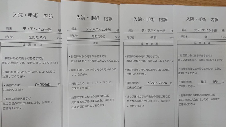 現在医療協力中の猫は、幸ちゃん、福ちゃん、なおたろう、ミミくん、小太郎、キジトラちゃん、白黒子猫。