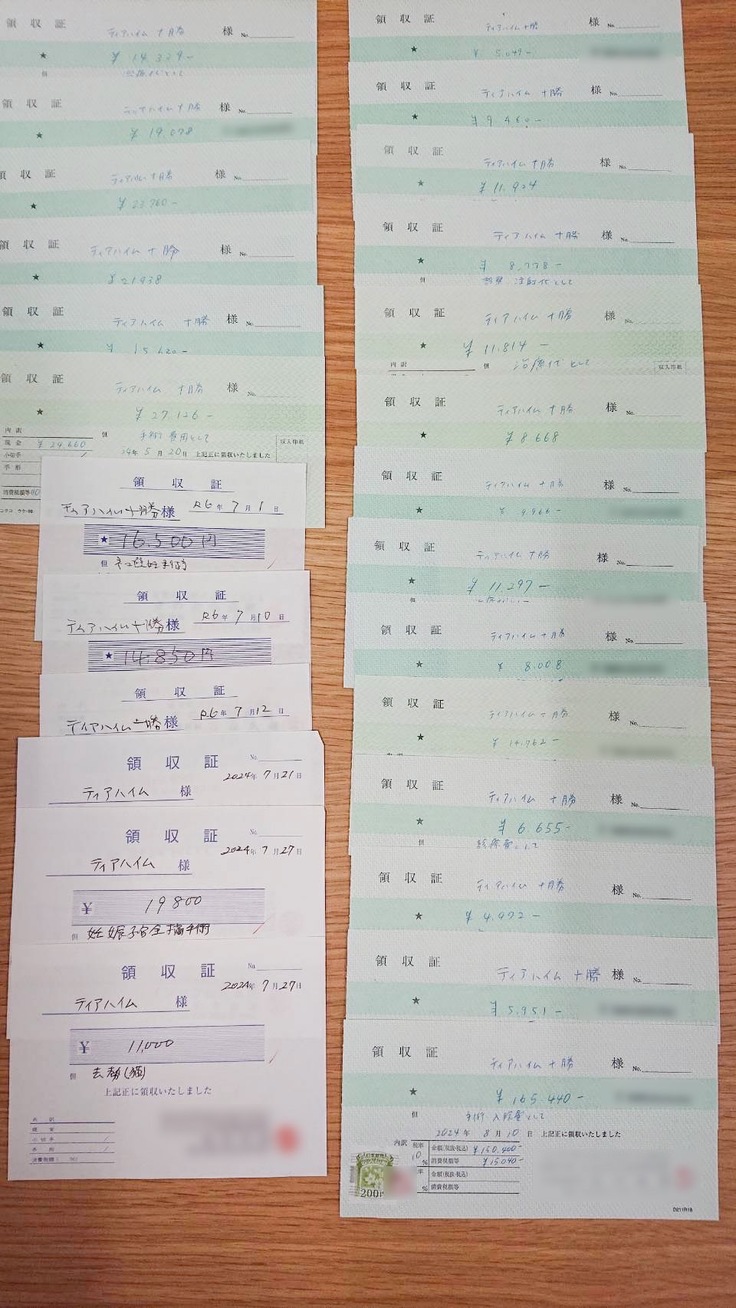 画像は2024年4月からの領収書で、この他に、振り込みで医療費の支払いもございました。