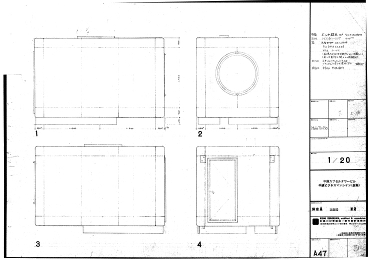 この図面は、最終所有企業から私たち中銀カプセルタワービルA606プロジェクトが譲り受けた「中銀カプセルタワービル 中銀ビジネスマンシオン(仮称) 新築工事設計図」の写しの中の1枚です。