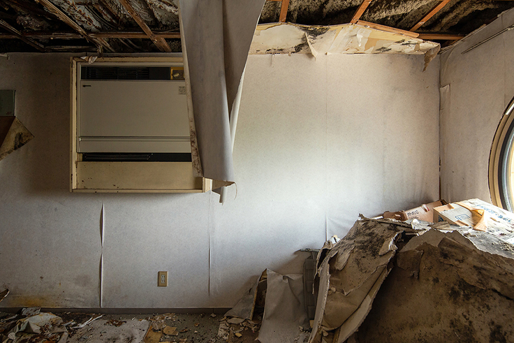 カプセルA306の内部は下記のような状態でした。解体直前の2022年4月、中銀カプセルタワービルA606プロジェクト撮影。