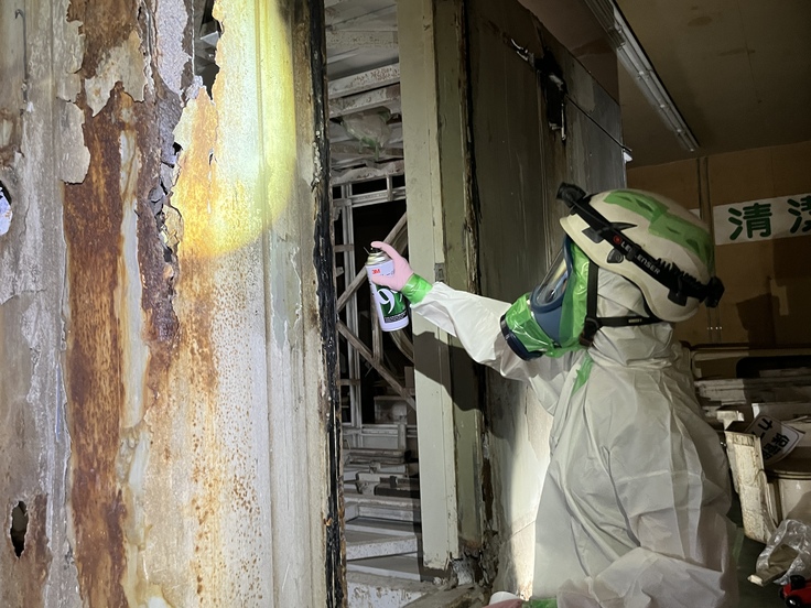 カプセル外壁のアスベスト再調査のため検体採取を行いました
