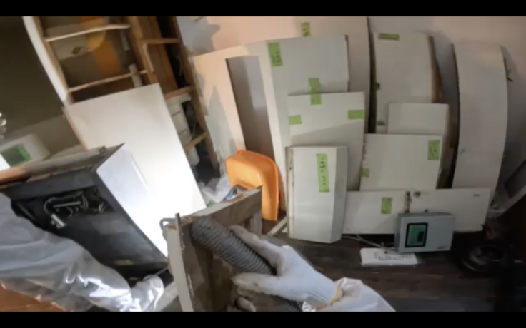 私たちは、カプセルA606をはじめとするカプセル内のオリジナルパーツを自らの手で救出しました。作業は2022年6月のA棟カプセル内のアスベスト除去作業の真っ最中に行われました。