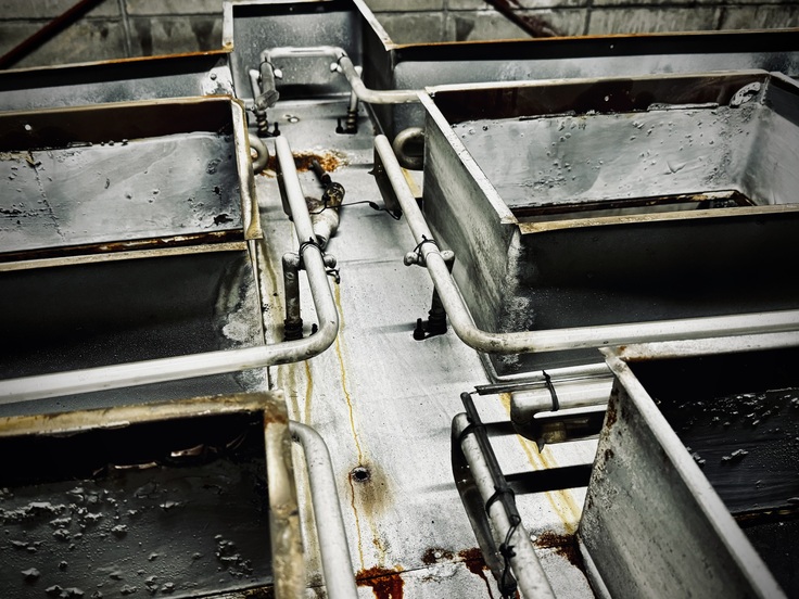 A606のオリジナルパーツ救出のタイミングでは、同じ工区にアスベスト除去作業が入っていなかったため、作業場内ですが比較的きれいな状態のEVホール・廊下部分を使用して、拭き作業などを行いました。