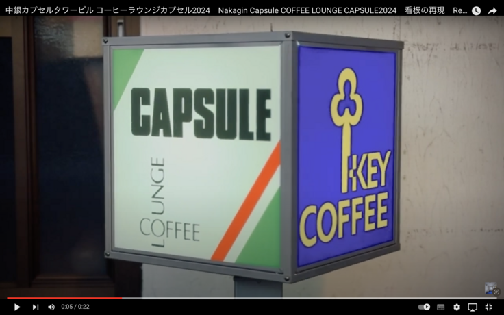 また、オリジナルパーツではありませんが、竣工時の資料を集める中で、1980年代の写真などをもとに1階に入っていた「コーヒーラウンジカプセル」の看板の復元をしました。