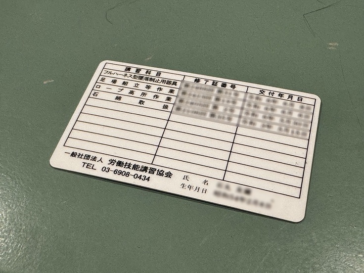 また、副代表はカプセルの解体時にすでに複数の資格を取得していましたが、さまざまな作業を自分たちでできるよう、2024年5月に「ロープ高所作業」、6月に「足場組立等作業」と「フルハーネス型墜落制止用器具」の講習を修了して統合し、最新の法規制などを学びました。