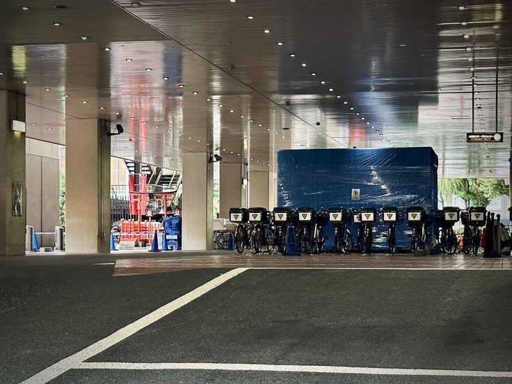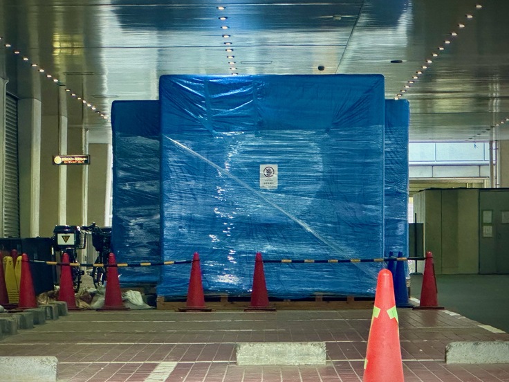 2023年7月、SHUTLの建設工事期間中は、同じ駐車場にブルーシートで包まれた2つのカプセルが鎮座していた