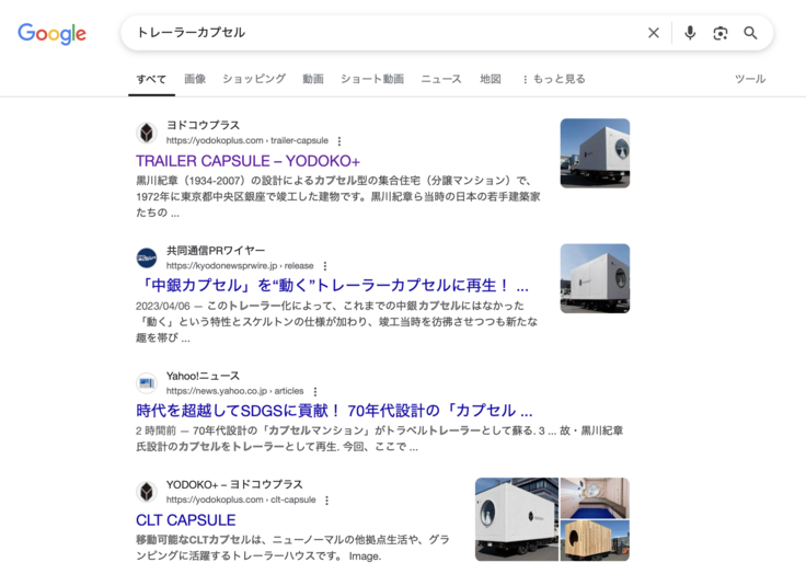 Googleで「トレーラーカプセル」と検索すると、検索結果として「TRAILER CAPSULE YODOKO+」などと出てくるが、キャッシュが残っているだけでリンク先に「トレーラーカプセル」の情報は無い。