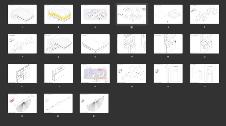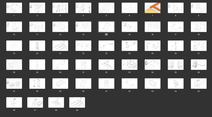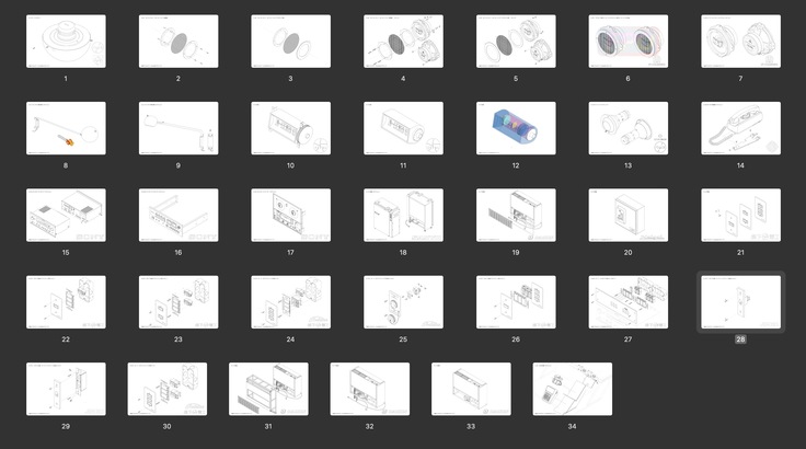 パーツリストは現時点で500ページ程度になっています。ほんの一部ですが、2024年12月の後には下記のようなパーツが追加で描かれています。たとえば、スイッチボード、ドアノブなどです。
