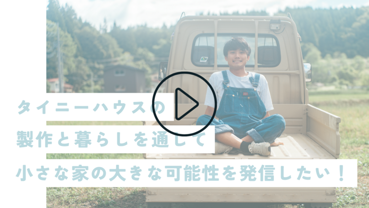 タイニーハウスの制作・旅を通して、小さな家の大きな可能性を発信して、一人でも多くの人に「小さい家に住むことってこんな感じなんだな」「タイニーハウスに興味が湧いてきた」「自分もやってみようかな」と思ってもらえたらと考えています。