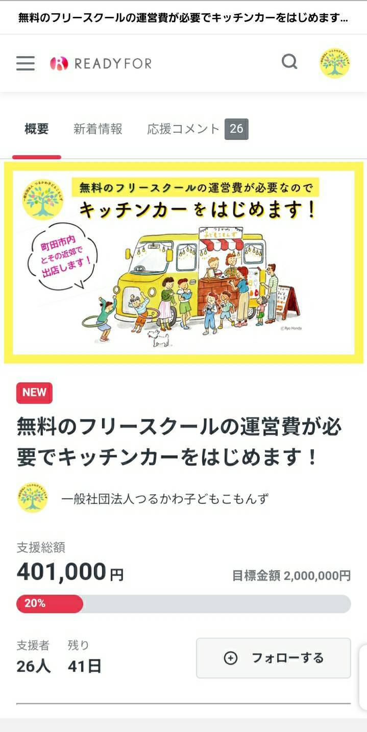 無料のフリースクールの運営費が必要でキッチンカーをはじめます!