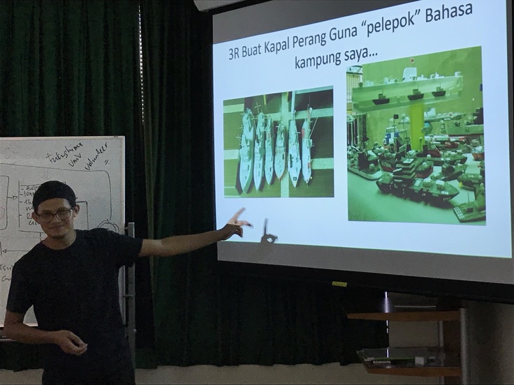 ▲学生の話を自分なりに整理し図示したハムザ。マレーシアでのボランティアの話も共有してくれました。