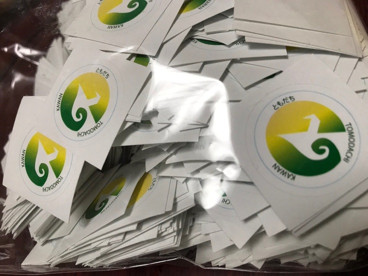 ともだち・カワン・コミュニティの活動を知っていただくためのパンフレットとマレーシア人アンジェリーナがデザインしたロゴマークのシールが届きました!