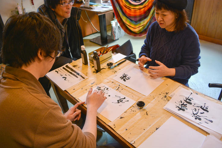 指文字書家として多くの人に「言葉の贈り物」をお届けする指文字書家『miwa』のアトリエで直接指導を受けながら指文字体験をご案内します。自分の指に墨や塗料を直接付け、指を筆代わりにして作品をつくる「指文字」アートをご体験ください。