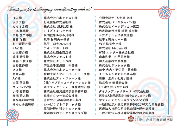 改めて、温かいご支援をいただいたすべての皆さまに心より感謝申し上げます。