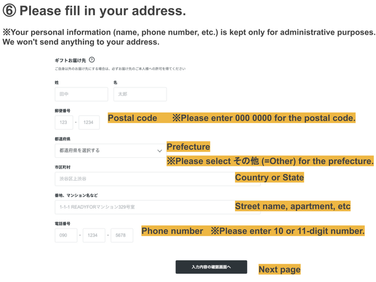 ※Please choose the3,000 yen,10,000 yen, 30,000 yen, 50,000 yen, 100,000 yen, 300,000 yen, 500,000 yen or 1,000,000 yencourse. Other courses are not available for supporters living overseas.