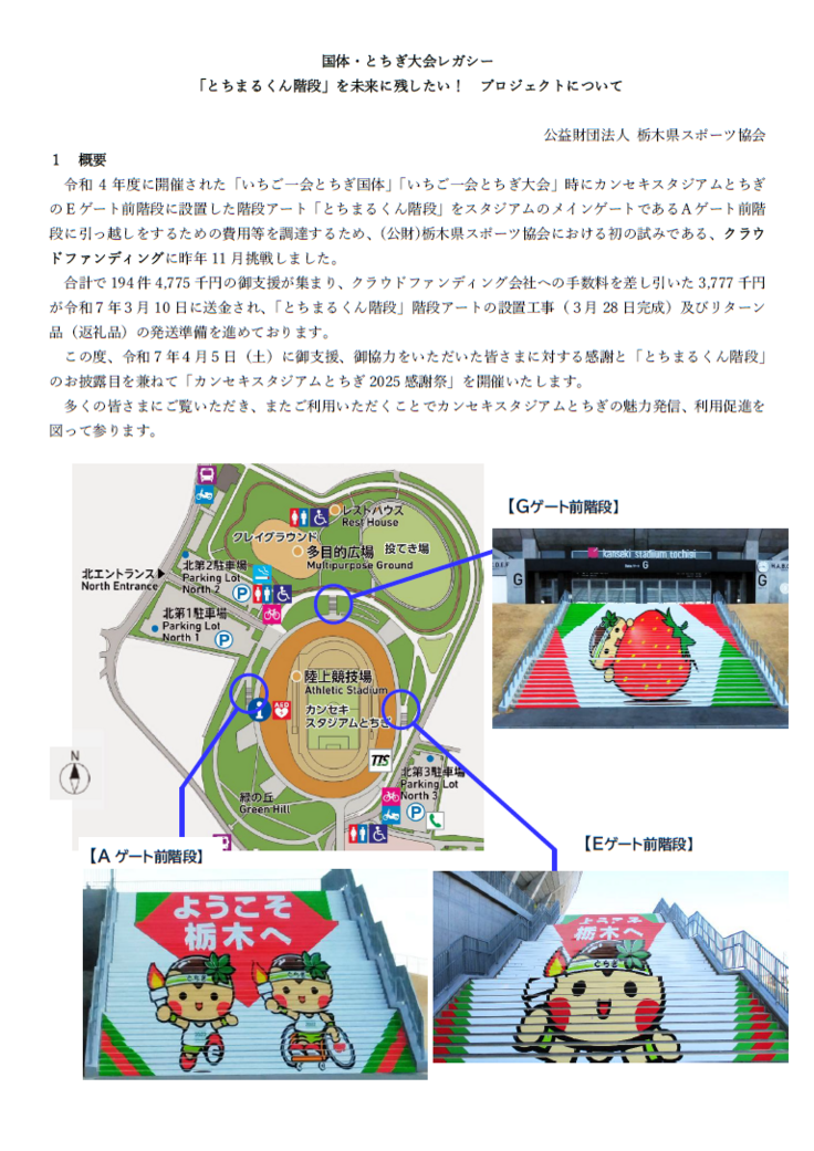 みなさまからのあたたかいご支援のおかげでとちまる君階段が無事に完成しました。本当にありがとうございます。
