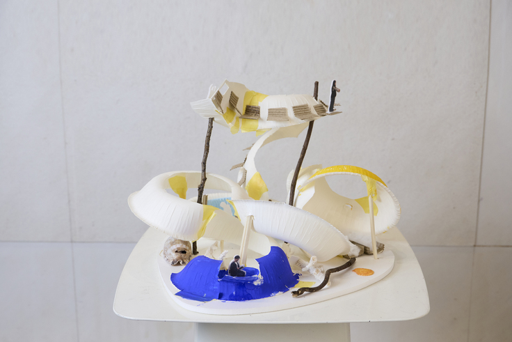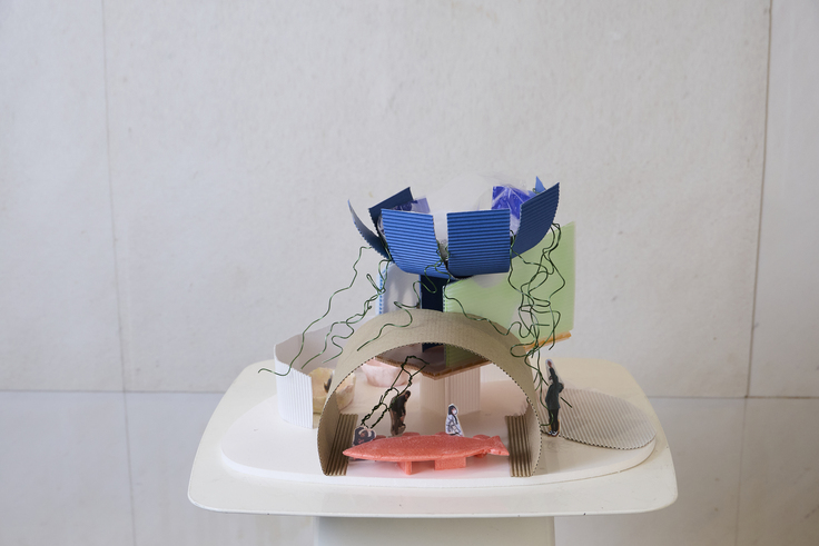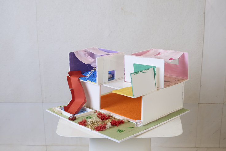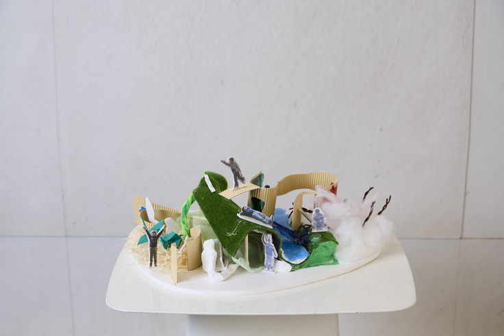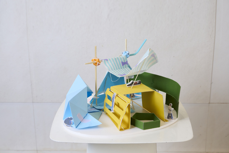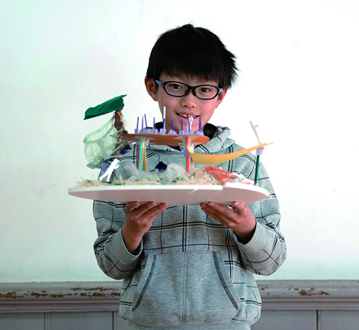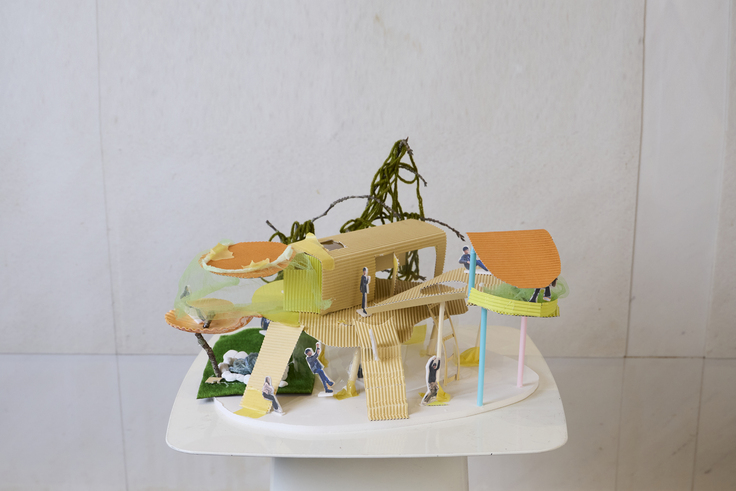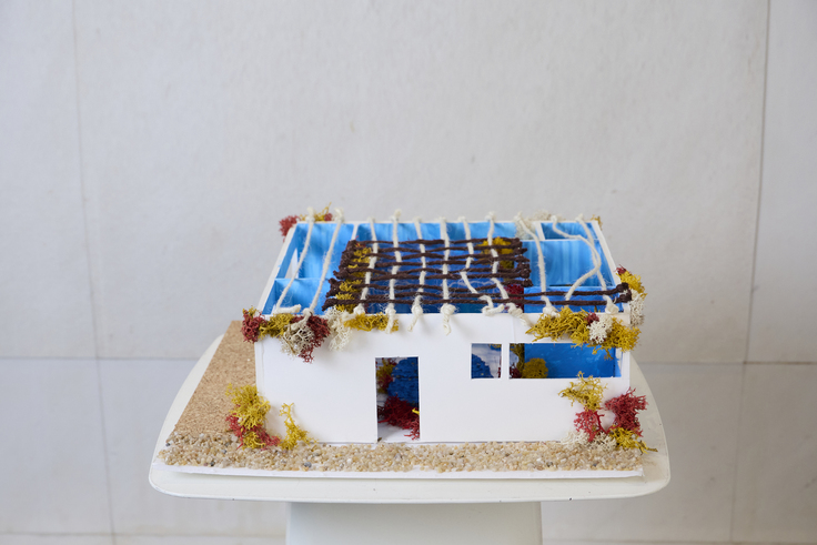 ティーチングアシスタントと 寝泊まりして構想を練り「こころの家」建築模型を完成させ、