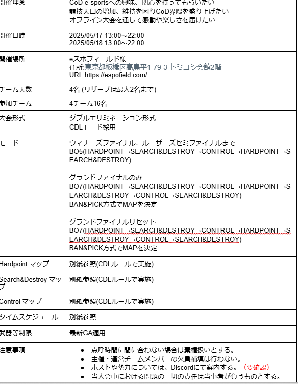 今回、このプロジェクトを起こそうと思った理由として「CoD e-sportsへの興味、関心を持ってもらいたい、競技人口の増加、維持を図りCoD界隈を盛り上げたい、オフライン大会を通して感動や楽しさを届けたい」と思ったからです。私は今までオンライン大会をたくさんそして長く続けており、去年ご縁があって2024年6月22、23日に東京にて初のオフライン大会を実現しました!