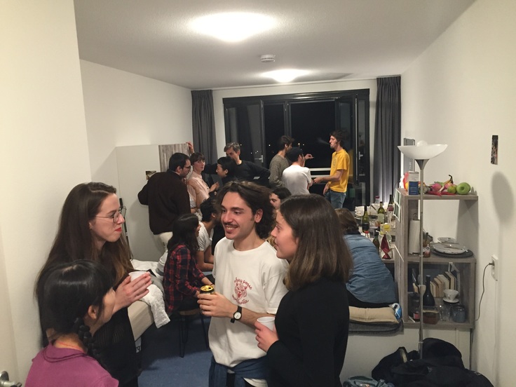 きっかけは写真奥に写っているおかっぱのアリスという女性で、彼女が私がオランダに着いて会話を交わした記念すべき最初の人です。というのも、彼女は私の部屋のお向かいさんであり、話してみてわかったのは、これからアリスと私は同じクラスの同級生になるのだということでした。アリスもまたポルトガルからの留学生で、着いたばかりで知り合いも少なく、私たちはすぐに仲良くなって、それからアリスはよくうちに晩ごはんを食べにくるようになりました。それからお互いに少しずつ知り合いも増え、それにつれてうちに晩ごはんを食べに来る人数も増えて行ったというわけです。
