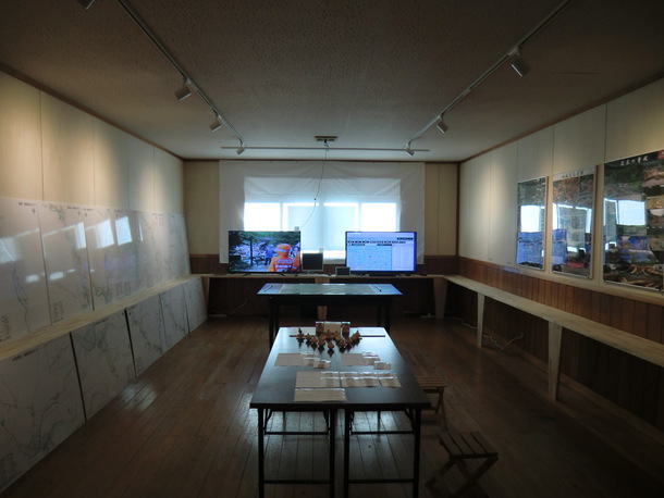 東峰村災害伝承館ですが,11月24日に無事オープンの運びとなりました。現在は,災害発生当時からの写真や映像,また報道関係者からの協力もいただき,貴重なデジタル情報をいつでも見ることができます。また,パネル展示では,住民や村からいただいた貴重な写真や東峰村の地区防災マップを展示しております。さらに現地の情報をARを使って見ることができる体験型の施設も展示しております。現時点では,運営の問題もあるため,当面は予約制でのオープンと