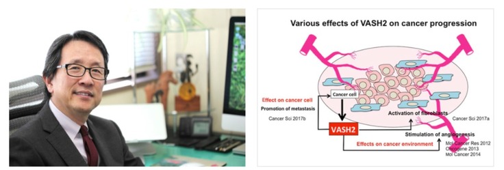 "Our research shows that Vasohibin-2 (VASH2), a novel moleule we have discovered, is expressed only in the testis in normal tissues, but overexpressed in all cancers, as evident by the cancer genome atlas," says Sato. "VASH2 promotes cancer progression through the effects on both cancer cells and cancer environments, and its inhibition has led to remarkable anti-tumor effects in various cancer models including the most malignant pancreatic cancer."