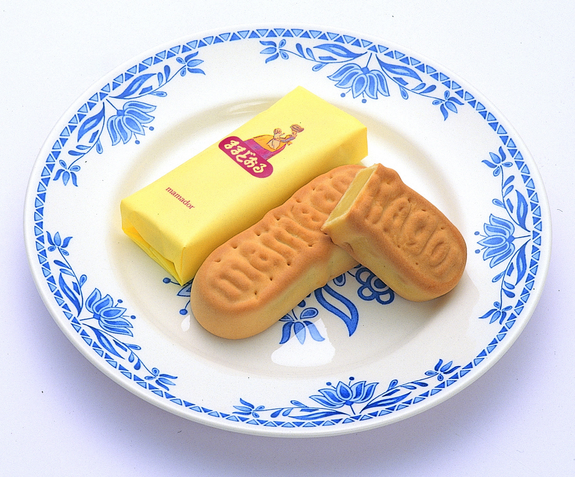 バターを使った生地で、ミルク味のあんを包み込んだ焼き菓子です。