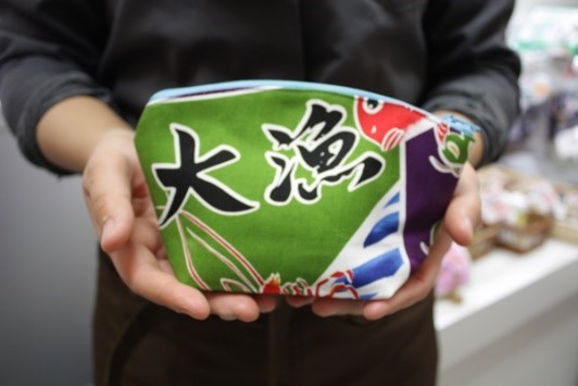 気仙沼唐桑で作られる「大漁旗」の絵柄をモチーフにしたミニポーチ