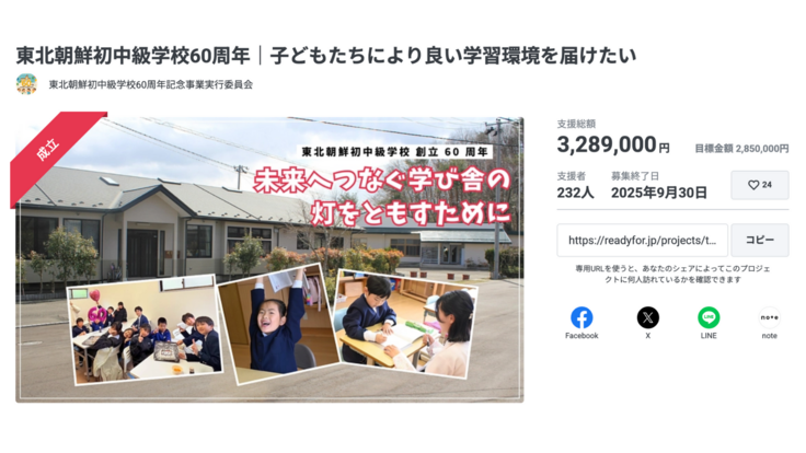 【東北朝鮮初中級学校 創立60周年記念事業】未来へつなぐ学び舎の灯をともすプロジェクトへのご支援、応援をいただき、誠にありがとうございました。