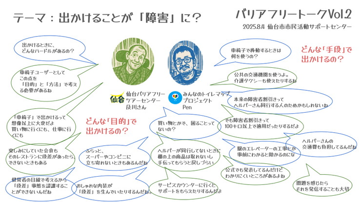 その1つがバリアフリートークで、仙台市で活動するNPO法人仙台バリアフリーツアーセンターの及川さんに、社会の「どこ」に困っているのか伺い、一緒に考える機会を作っておりました。