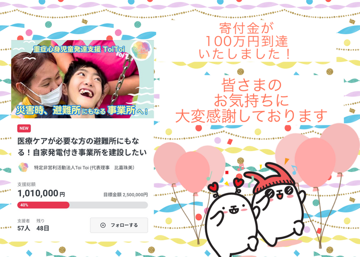 2023.09.13の午後1時時点、クラウドファンディング開始3日目にて、支援金が100万円に到達いたしました。