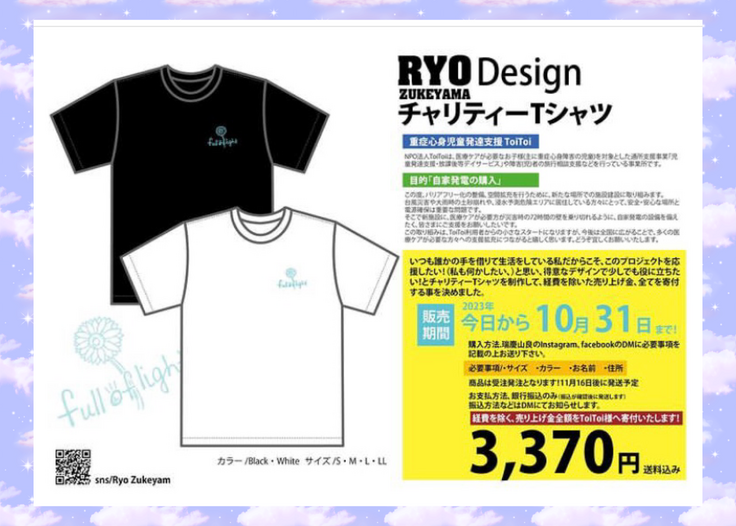 Tシャツを製作する経費を除いた、売上金すべてをToi Toiのクラウドファンディングへ寄付する。との事。りょうさんありがとうございます。