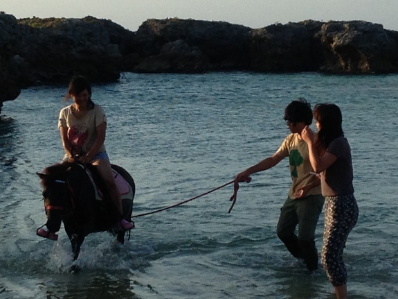 (宝島で引き馬体験“海遊び”する観光客)