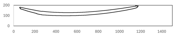 図2 図1の写真から刀身の形状を縦横の座標に変換しグラフ化したもの