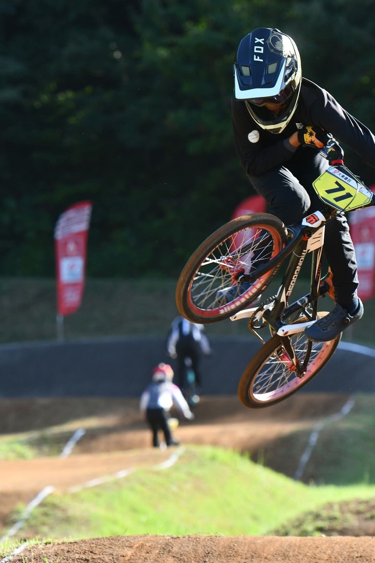 20”の1本目で大きなクラッシュをして膝など打撲し痛みがありましたが、最後まで積極的に走りました。